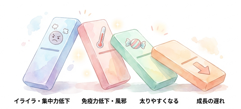 このように、睡眠不足は心身の「調子を整える時間」を奪ってしまうため、ドミノ倒しのように色々な不調を招きます。たとえ一晩ぐらい寝なくても大丈夫に思えても、子どもの体は正直です。翌日に少しでも「ぼんやりする」「元気が出ない」と感じたら、それは脳と体からの「眠りが足りないよ」というサインかもしれません。親御さんにはぜひ、「睡眠は勉強や遊びと同じくらい大事」というメッセージをお子さんに伝えてあげてください。